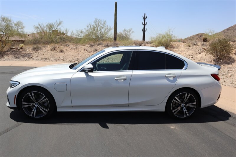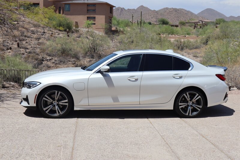 Introducing the 2021 BMW 330e in striking Mineral White Metallic exterior and sleek Black interior. Powered by a 2.0L Plug-in Hybrid Turbo I4 engine delivering 288hp and 310ft. lbs. of torque, this luxury sedan offers a perfect blend of performance and efficiency. With below 42,000 miles, averaging less than 9,000 miles per year, this BMW 330e is priced below Kelley Blue Book value. Boasting 25 MPG in the city and 33 MPG on the highway, it promises a fuel-efficient drive. Meticulously maintained and in excellent overall condition, this vehicle comes with factory default features and a clean CARFAX report.